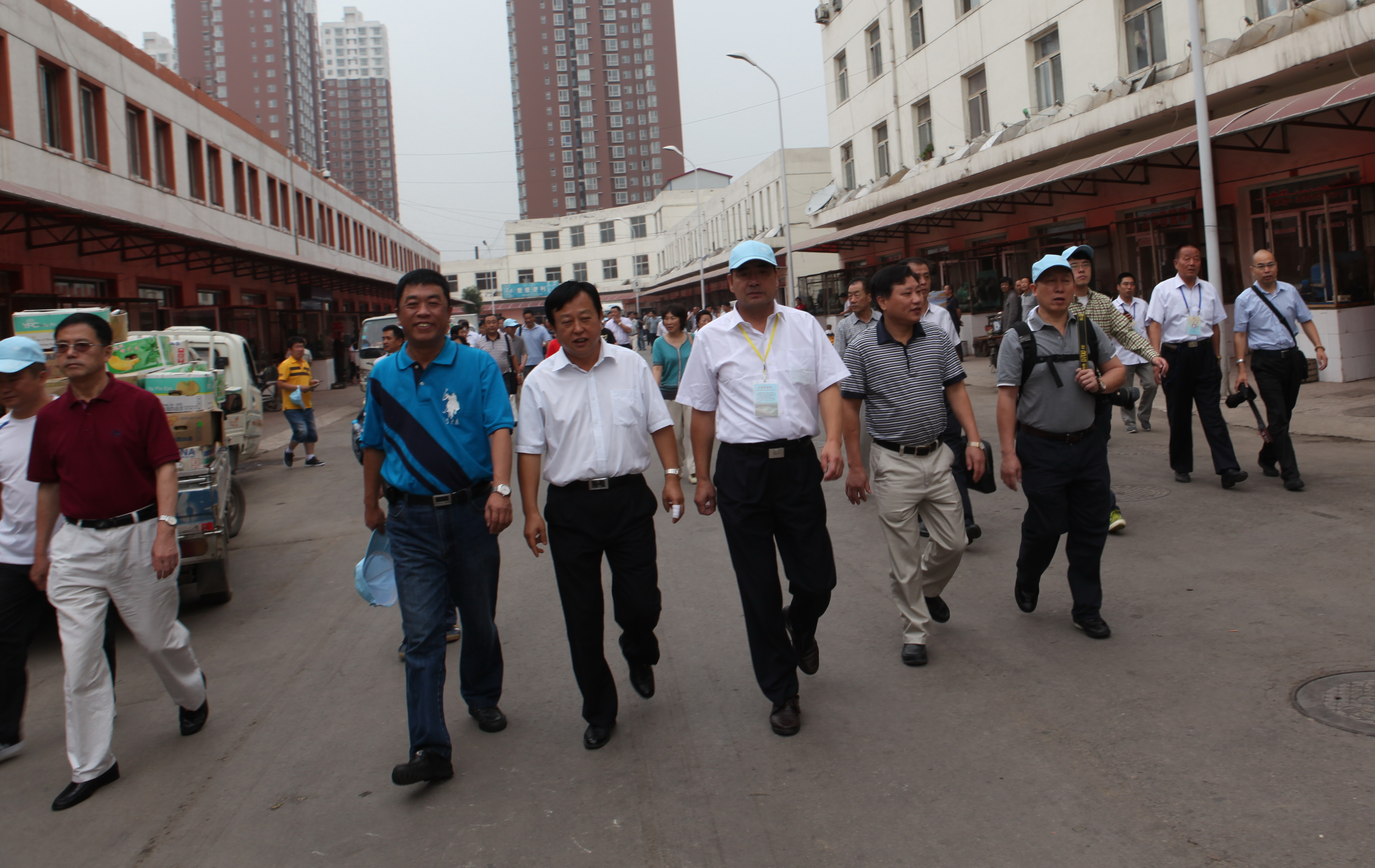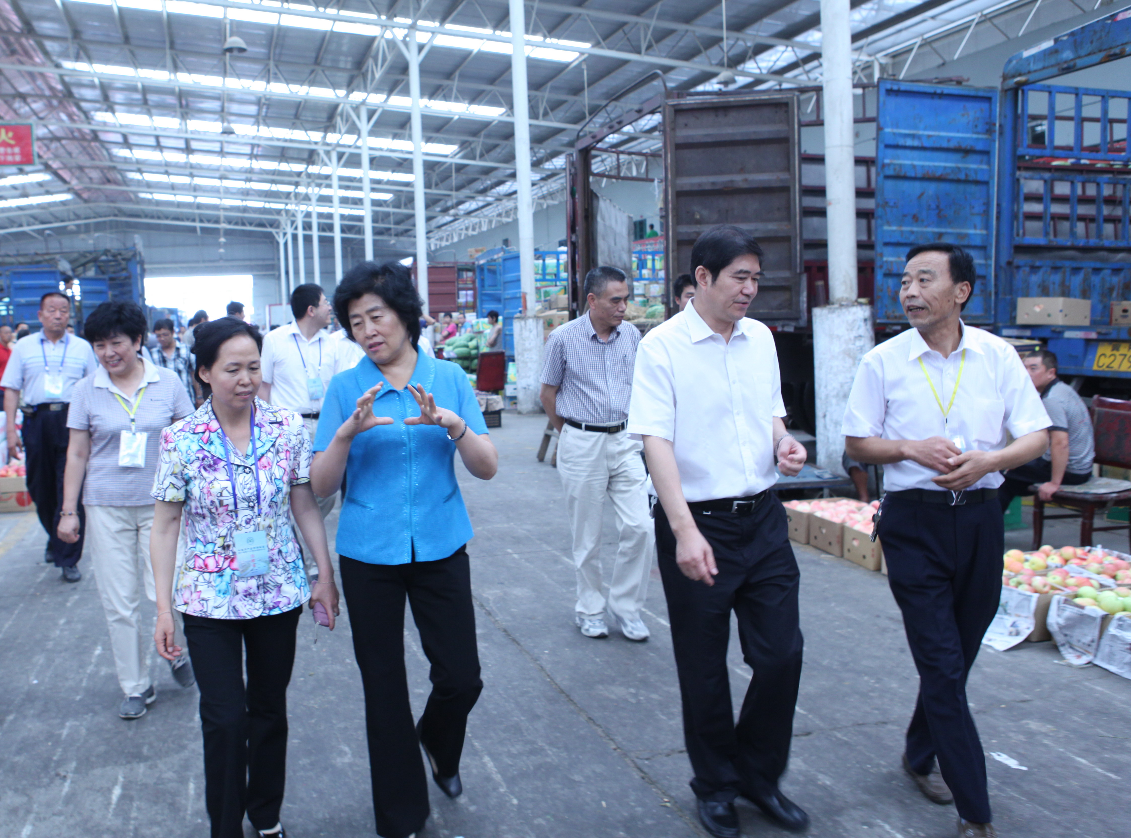 张玉香会长(前排左二)、沈镇昭副会长(前排左三)一行在市场董事长杨凤仙(前排左一)、书记李中强(前排右一)的陪同下考察太原市河西农产品市场 |