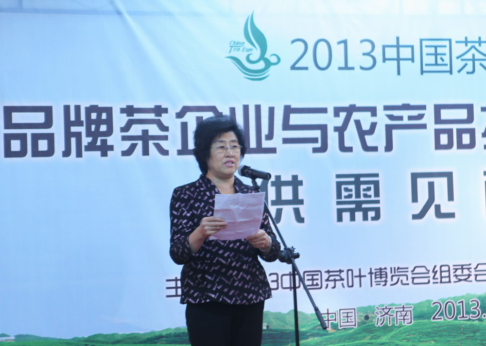 10月23日,中国茶叶博览会在山东济南开幕。中国农产品市场协会会长张玉香出席会议并致辞。